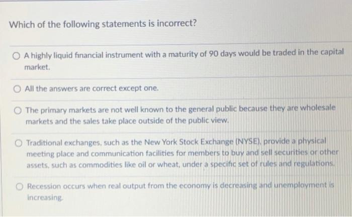 Solved Which Of The Following Statements Is Incorrect O A Chegg Com